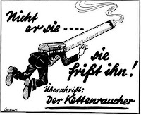 Adolf Hitler sangat menentang rokok di kemudian hari bahwa ia tidak bisa berada di ruangan yang sama dengan seseorang yang menyalakan rokok, dan menganggap merokok sebagai pemborosan uang. Jadi, ia mulai melakukan salah satu gerakan anti tembakau yang paling mahal dan efektif sepanjang sejarah. Selama tahun 1930-an dan 1940-an, gerakan anti-tembakau lainnya gagal secara fantastis di negara-negara lain, tapi di Nazi Jerman gerakan itu dilakukan dengan serius.Nazi melarang merokok di restoran dan sistem transportasi umum, unutk kesehatan masyarakat, dan sangat mengatur iklan rokok. Ada juga pajak tembakau yang sangat tinggi, dan pasokan rokok ke Wehrmacht yang dibatasi. Beberapa organisasi kesehatan Nazi Jerman bahkan mulai mengklaim bahwa merokok mempertinggi risiko keguguran oleh wanita hamil, dan sekarang menjadi fakta umum yang terkenal. Statistik tahunan konsumsi rokok per kapita pada 1940 di Jerman hanya 749, sementara di Amerika lebih dari